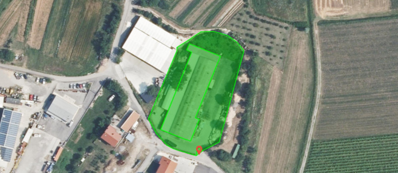 Poslovno skladišna zgrada: 1.872 m2Površina parcela: 3.689 m2 + 1.917 m2 + 17 m2